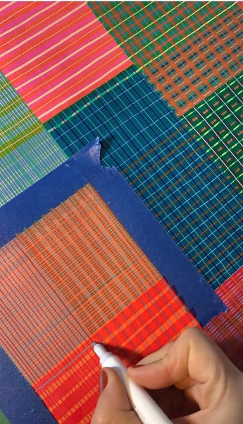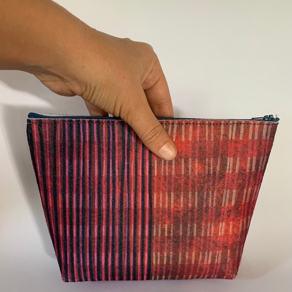 This fabric design is taken from an original painting I did, playing with many layers of lines on top of lines on top of colour. Each bag is different to the next, because life's too short to have the same thing as everyone else.