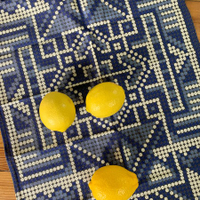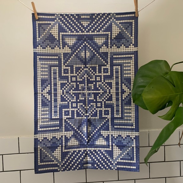I call this design African Delft. I've always loved beadwork, and blue is just timeless. It's been printed on a natural 100% cotton hopsack with eco-friendly inks. It is machine washable and colourfast, suitable for everyday use.