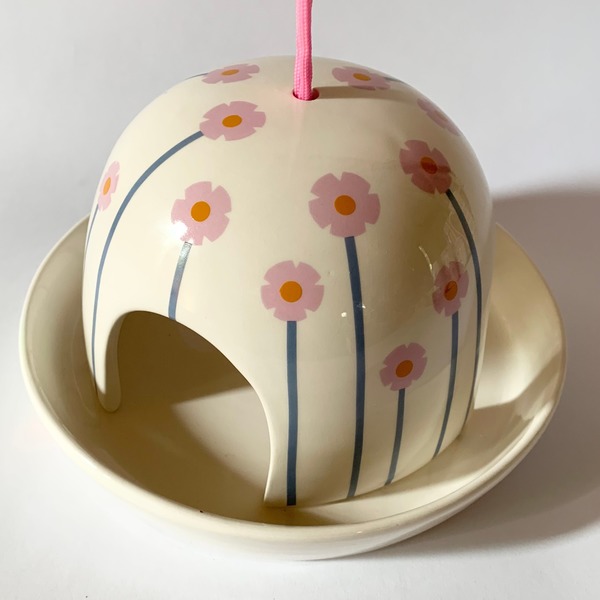 Comes with 150 cm double hanging string and ring. Do not hang where it can knock against anything if the wind is blowing, or if birds get feisty with each other!