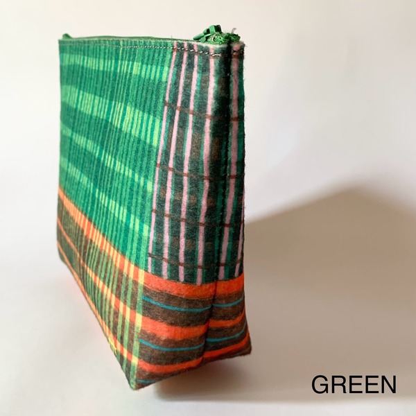 The bags are made from recycled felt - and recycled felt is made from 100% recycled plastic bottles! So consider this a way to help keep plastic bottles out of the landfill. 15 plastic bottles are used per square metre of felt, so one bag uses just over 2 plastic bottles.