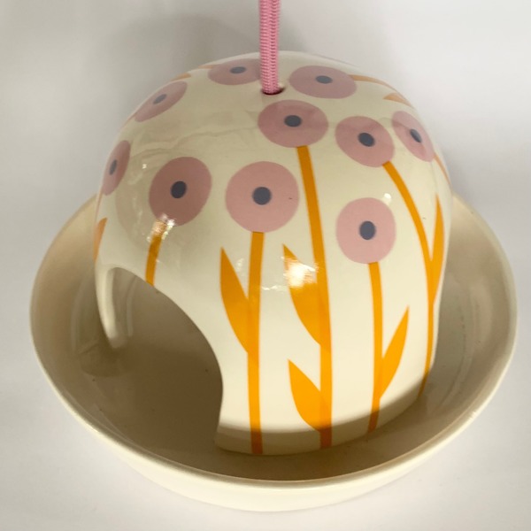 Comes with 150 cm double hanging string and ring. Do not hang where it can knock against anything if the wind is blowing, or if birds get feisty with each other!